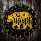 1. Elevate your game room or man cave with this striking black and gold dart board, a perfect blend of functionality and artistry. The centerpiece of this unique design features a majestic gold bear, intricately detailed, set against a backdrop of towering trees and a luminous moon. The bear's body is adorned with a captivating forest and moon scene, creating a mesmerizing visual that draws the eye and sparks conversation. This dart board is not just a game accessory; it’s a statement piece that embodies the spirit of adventure and the great outdoors, making it an ideal addition for those who appreciate wildlife and nature.