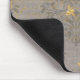 A subtle background color with hues of light purple or blue also has squares of scrollwork and leaves. There are gold bees throughout the design.