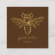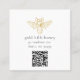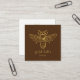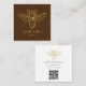 Modern square business card features gold vintage bee illustration on dark brown background with contemporary text on front, and customizable QR code for your website or social media on back.