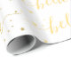 Wrap your Christmas holiday gifts for your friends and family using this beautiful holiday wrapping paper with the word "Believe" written in gold foil (printed photo effect) script handwriting text on a white solid color background and confetti stars pattern. Elke Clarke © Available at www.zazzle.com/monogramgallery.