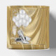 Elegant gold and silver glitter high heel shoe gold birthday party favor boxes with a pretty gold satin look background. You can easily customize these gold favor boxes by adding text in the font style and color of your choice.