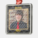 A gold frame highlighted by a background with a subtle damask pattern is the centerpiece of this elegant keepsake photo ornament. Upload your own photo and customize the year and name. This elegant design makes a great gift for any occasion!