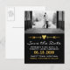 This wedding card features a glittering heart and arrows motif, elegant white and gold text, and a sharp black background. This elegant style save the date card is sweet and simple, with a touch of country style. Perfect for letting your family and friends know about your perfect day!