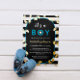 Gold and blue It's a boy baby shower invitation sprinkled with gold foil baby footprints. Striped it's a boy baby shower invitation in a chic combo of black, blue, and gold foil. Retro boy baby shower invitation with stripes, baby feet, and blue details.