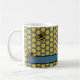 GOLD BLACK BUMBLE BEES ON BLUE HONEYCOMB PATTERN COFFEE MUG