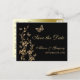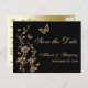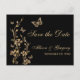 This dramatic amber gold and black floral save the date post card has SIMULATED coppery gold butterflies and flowery vines on it that matches the wedding invitation shown below. It would be perfect notice of your upcoming fall, winter, or New Year's Eve wedding. ****If you change fonts, or the size of the font, some of the design and/or text may get cut-off. Everything will print as you see it on your monitor. I will not see changes you make, and Zazzle will NOT correct anything (typos, mis-alignment etc.). The text is all customizable. If you need help with this product, please email me BEFORE you place your order. If you require any other matching items, please email your request to niteowlstudio@gmail.com