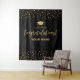 This modern tapestry is perfect for a chic black and gold color theme graduation party. Perfect photo backdrop to remember your special day. The design features golden typography " Congratulations! " and a graduation cap with confetti background. You can personalize the text.