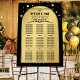 An elegant art deco style wedding seating chart featuring a black and gold design with sparkling confetti.