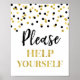 Please help yourself sign for baby shower, bridal shower, birthday party or wedding in a black and gold confetti pattern.