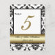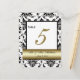 Stylish, sophisticated and elegant cards for your wedding reception Table Number Cards. Floral, black and white vintage damask pattern background with an gold table number and a metallic gold line effect accent color where you can add your married name of the bride and groom and wedding date . Layout Design by Elke Clarke©. Graphics licensed. Customize with your information and make one card with each number and add one card per number into your cart. Then use your previous order item to select "customize it" and change the number.