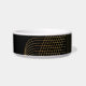 This is a heavy, durable bowl decorated with Tibbies of many colors, the perfect size for hungry/thirsty Tibs. The design is interesting and printing clear.