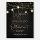 Modern design with strings of glowing lights over chalkboard background. Retirement Party Welcome Sign. Part of a collection. Matching items available.