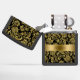 Gold & Black Floral Damasks Monogram Zippo Lighter