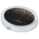 Gold and Black Sparkle Glitter Script Monogram Name Compact Mirror. This makes the perfect sweet 16 birthday, wedding, bridal shower, anniversary, baby shower or bachelorette party gift for someone that loves glam luxury and chic styles.