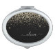 Gold Black Glitter Script Monogram Girly Name Compact Mirror