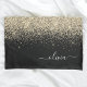 Gold Black Glitter Script Monogram Girly Name Pillow Case