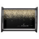 Black and Gold Faux Sparkle Glitter Script Monogram Name Place Serving Tray. This makes the perfect graduation, birthday, wedding, bridal shower, anniversary, baby shower or bachelorette party gift for someone that loves glam luxury and chic styles.