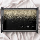 Gold Black Glitter Script Monogram Girly Name Serving Tray