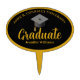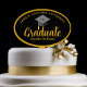 This sophisticated gold and black graduation cake topper features elegant cursive script under a grad cap. Personalize this commemorative Class of 2025 graduate decor with chic serif typography for a formal senior celebration. Modern high school or college graduation party suite with a sleek round border.