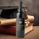 This sophisticated gold and black graduation wine label features elegant cursive script under a grad cap. Personalize this commemorative Class of 2025 graduate party accessory with chic serif typography for a formal senior celebration. Modern high school or college graduation wine labels that read Congratulations.