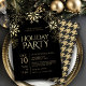 Gold foil snowflakes against a black background on the front meets black and gold glitter houndstooth on the back for a festive and elegant glam Christmas or holiday party invite. All text is editable to suit your needs by clicking “personalize this template.” Check out the rest of EmmyINK’s collection for a budget friendly version of the same invite as well as coordinating party supplies and decor!