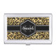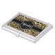 Chic gold and black leopard print business card case with a custom name and monogram template. A cute and trendy safari animal print pattern background topped with your own bit of personalization.