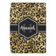 Chic gold and black leopard print ipad pro cover with a custom name and monogram template. A cute and trendy safari animal print pattern background topped with your own bit of personalization.