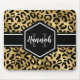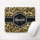 Chic gold and black leopard print mousepad with a custom name and monogram template. A cute and trendy safari animal print pattern background topped with your own bit of personalization.