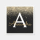 Gold and Black Faux Glitter and Sparkle Elegant Monogram Birthday Party Napkins. This Birthday Party, Bridal Shower, Wedding, Baby Shower Napkin can be customized to include your initial and first name.