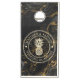 Gold Black Marble Pineapple Wedding Crest & Names Cornhole Set
