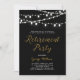 Celebrate a special day with this stylish gold party invitation! This design features a stylish script typography with a gold glitter texture and light string on a black background. You can customize the background color.