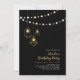 Gold & Black | Modern String Lights Birthday Party Invitation