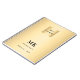 A faux gold looking background, black text. Personalize and add your logo, monogram initials, name and a title.