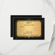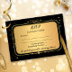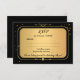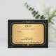 Elegant gold and black retro chic RSVP card with festive confetti sparkles.