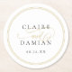 Gold Black Simple Elegance Romantic Script Wedding Round Paper Coaster