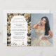 Gold Black Sparkle Quinceanera Balloon Photo Invitation