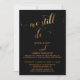 Here's a festive choice for your wedding anniversary celebration needs. Over a black background (the color can be changed to anything you prefer,) I've placed typography graphics that read "we still do" and "and" featuring an elaborate script font embellished with hearts. The graphic was then overlaid with a smooth faux gold effect. A corresponding golden hue was used to render your personal details. Use the template fields to add your own details and click to customize further if you'd like to make any additional modifications. All layers are unlocked to allow for all the positioning and sizing control you desire. The back was covered in an elegant repeating pattern of nested faux-gold squares rotated to a diagonal.