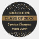 Personalize these round stickers for favors, gifts and packages for the graduation party. Featuring gold, black and white confetti design elegant and modern. Celebrate the graduation by including your grad's name, school and class year.