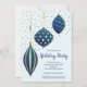 Dark blue and gold Christmas tree ornaments and your holiday Christmas party details in chic lettering on a pale blue background. You can change background color to anything! Perfect for your office holiday party, Christmas party, holiday dinner party invitation and more. If you want thickest paper, select Matte. MATCHING items in our store.