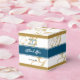 Gold Blue Elegant Script Monogram Wedding Favor Boxes