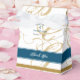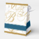 Gold Blue Elegant Script Monogram Wedding Favor Boxes