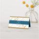 Gold Blue Elegant Script Monogram Wedding Place Card