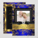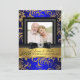 Gold Blue Floral Photo 50th Wedding Anniversary Invitation