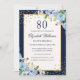 Gold Blue floral Sparkle 80th Birthday Invitation