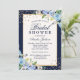 Gold Blue floral Sparkle Bridal Shower Invitation
