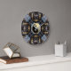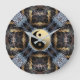 Gold Blue Fractal Tapestry with Yin Yang Symbol Large Clock