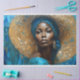 Gold Blue Mosaic African American Woman Decoupage Tissue Paper