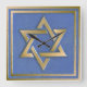 Gold Blue Star of David Art Panel Square Wall Clock