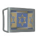 Gold Blue Star of David Art Panels Rectangular Belt Buckle