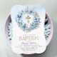 Gold & Blue Watercolor Floral Photo Boy Baptism Invitation